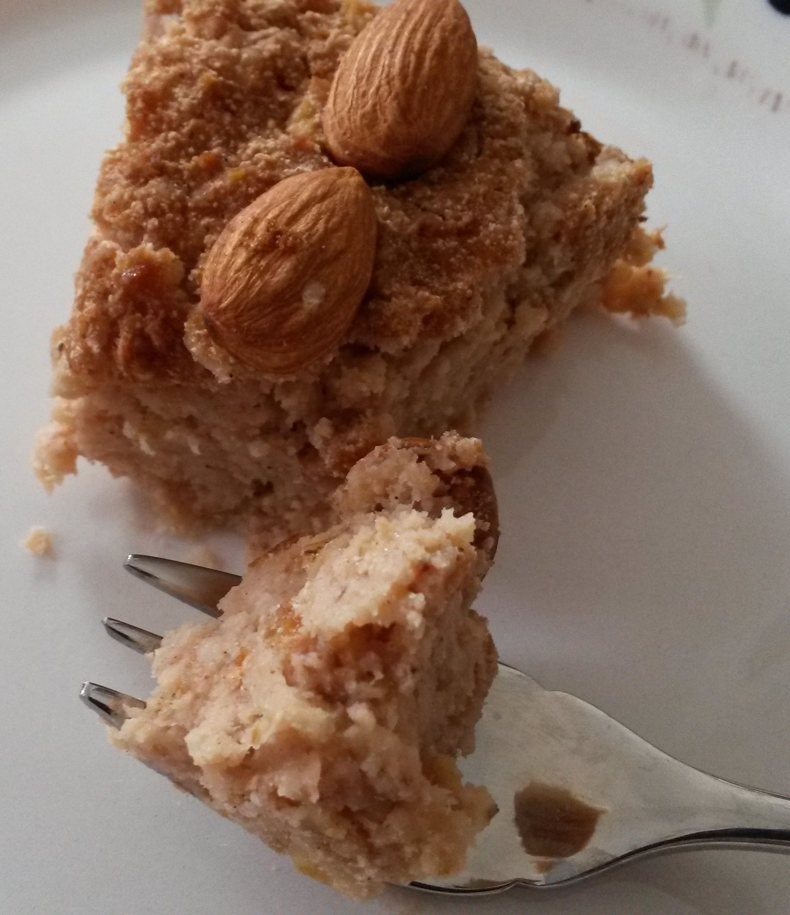 Apples, cinnamon, dates, coconut milk, almonds… sounds like a beautiful mix for a great breakfast or tea time snack. Add cream, chocolate layer and there you have a dessert! Love how versatile this recipe is! 🙂