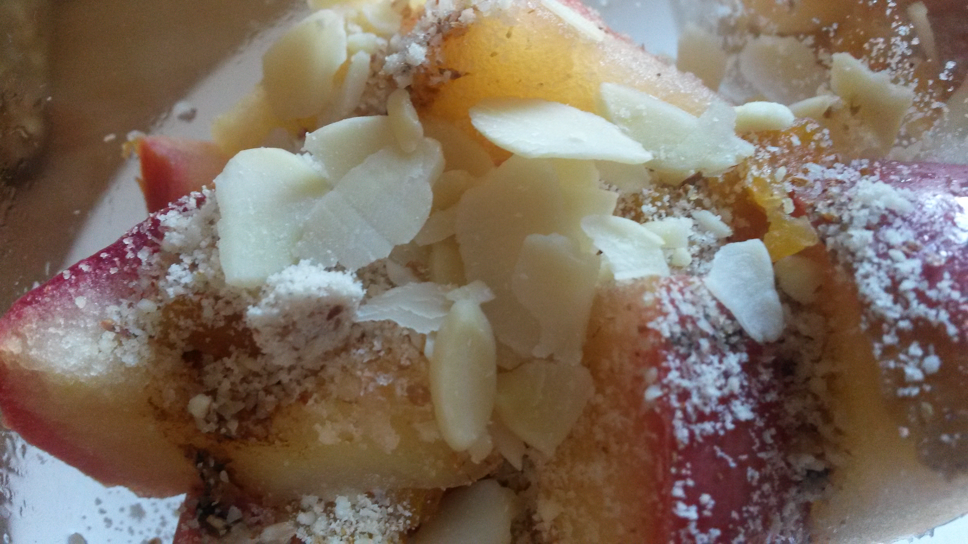 - Sprinkle with flaked almonds (these are great dry toasted).