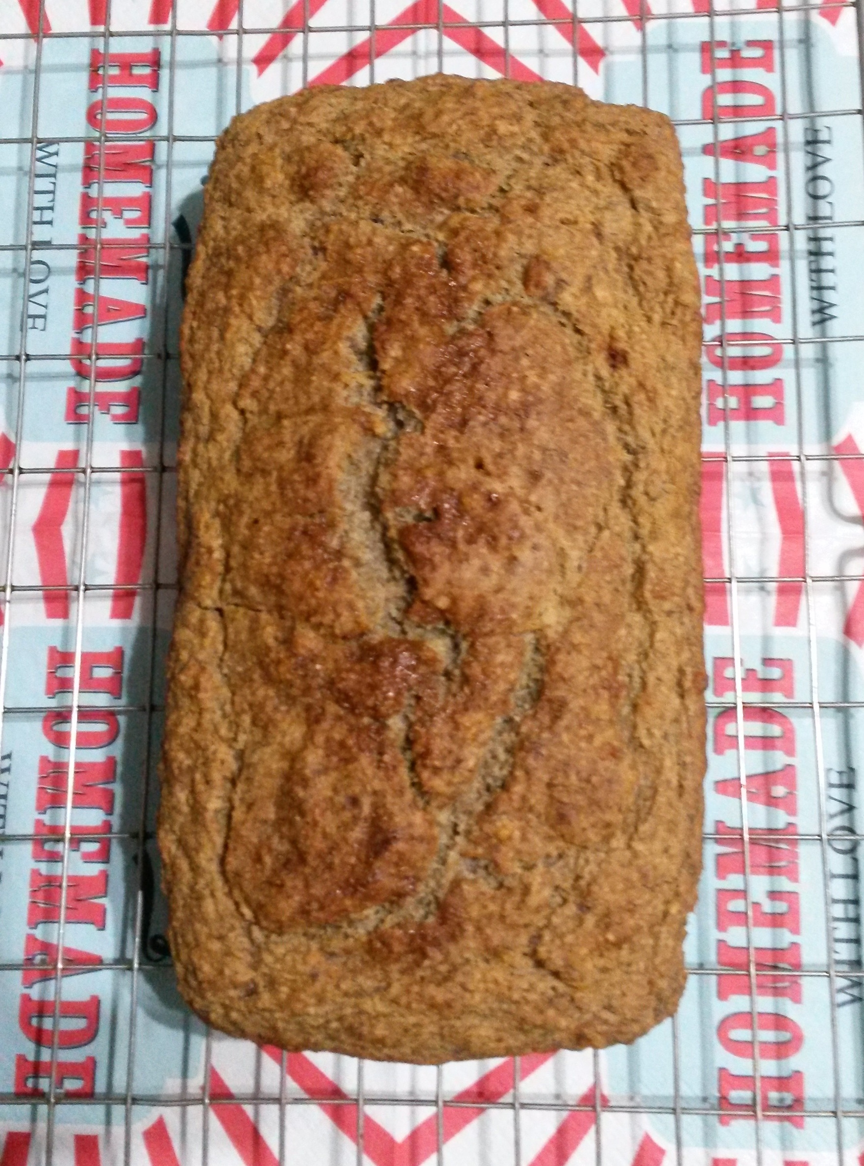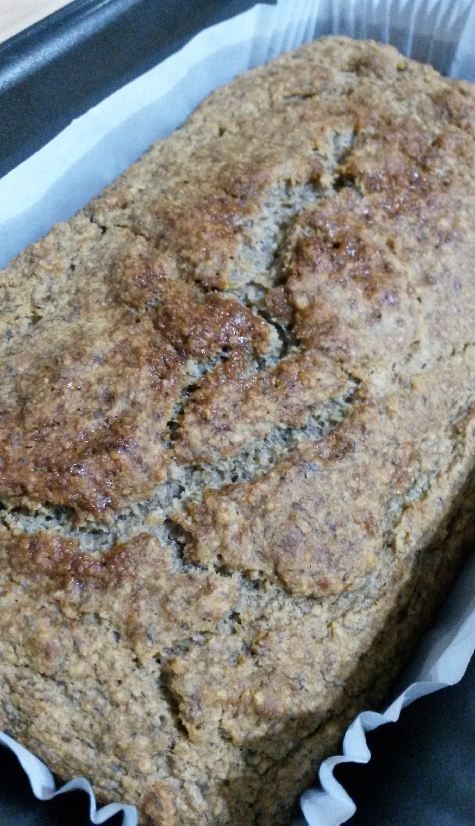 What could be better than the smell of freshly baked banana bread in the morning… other than eating it of course! 😀 I used to have about three different banana bread recipes depending on who was eating it! A cakey type one for children, a bread type one for hubby and a cross between the two full of spice for me! 😛 Trying to veganise any of them proved really tricky so I’ve been experimenting for a while (and eating variations for breakfast, lunch, snack) and I now have the first recipe I’m happy with! 🙂 What is great about this version is that it isn’t too sweet, it can be used as a tasty nutritious snack and (if we let it) lasts for a week whilst still tasting great! 🙂