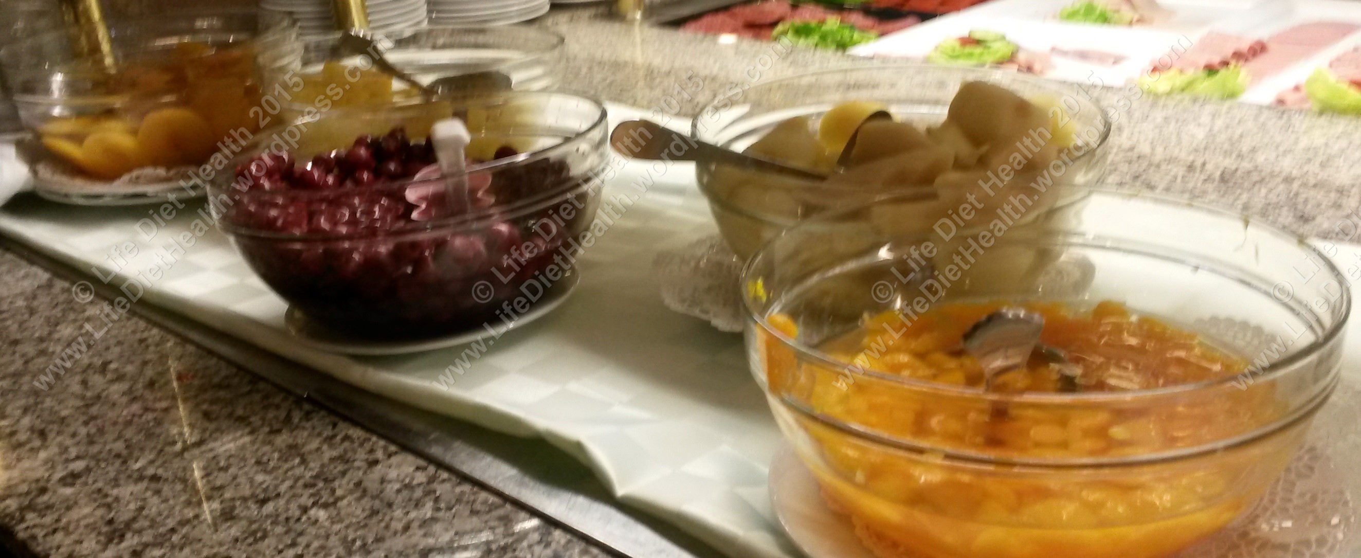 Staying in a spa hotel we were fortunate to have a very wide choice for breakfast… they even had fresh cherries one day! yumyum! Hot food, cold food, dairy free milk choices, salads, fruits, as well as yogurts, breads and pastries.
