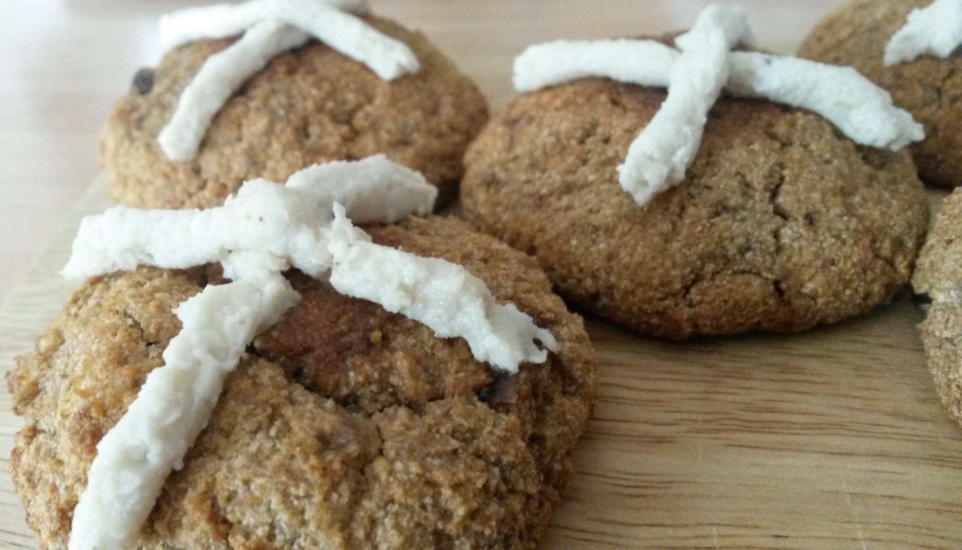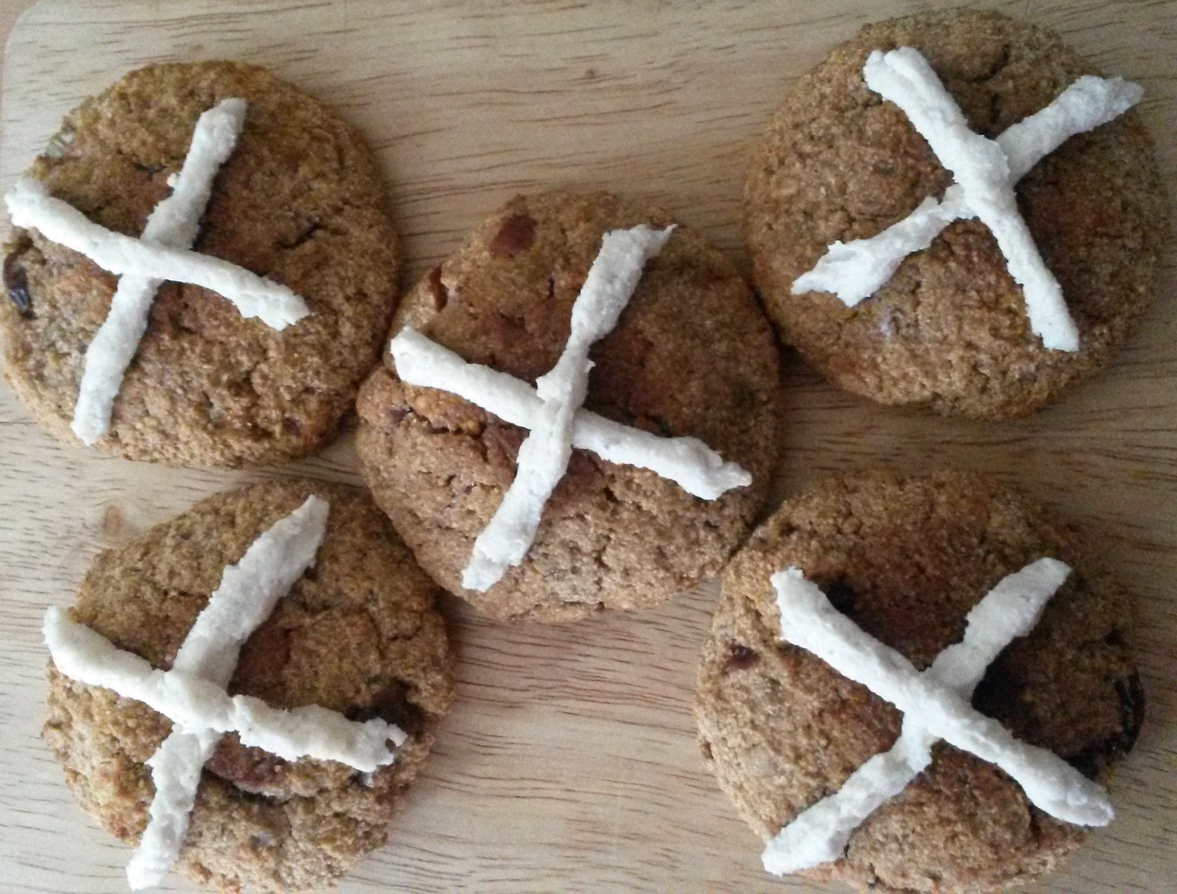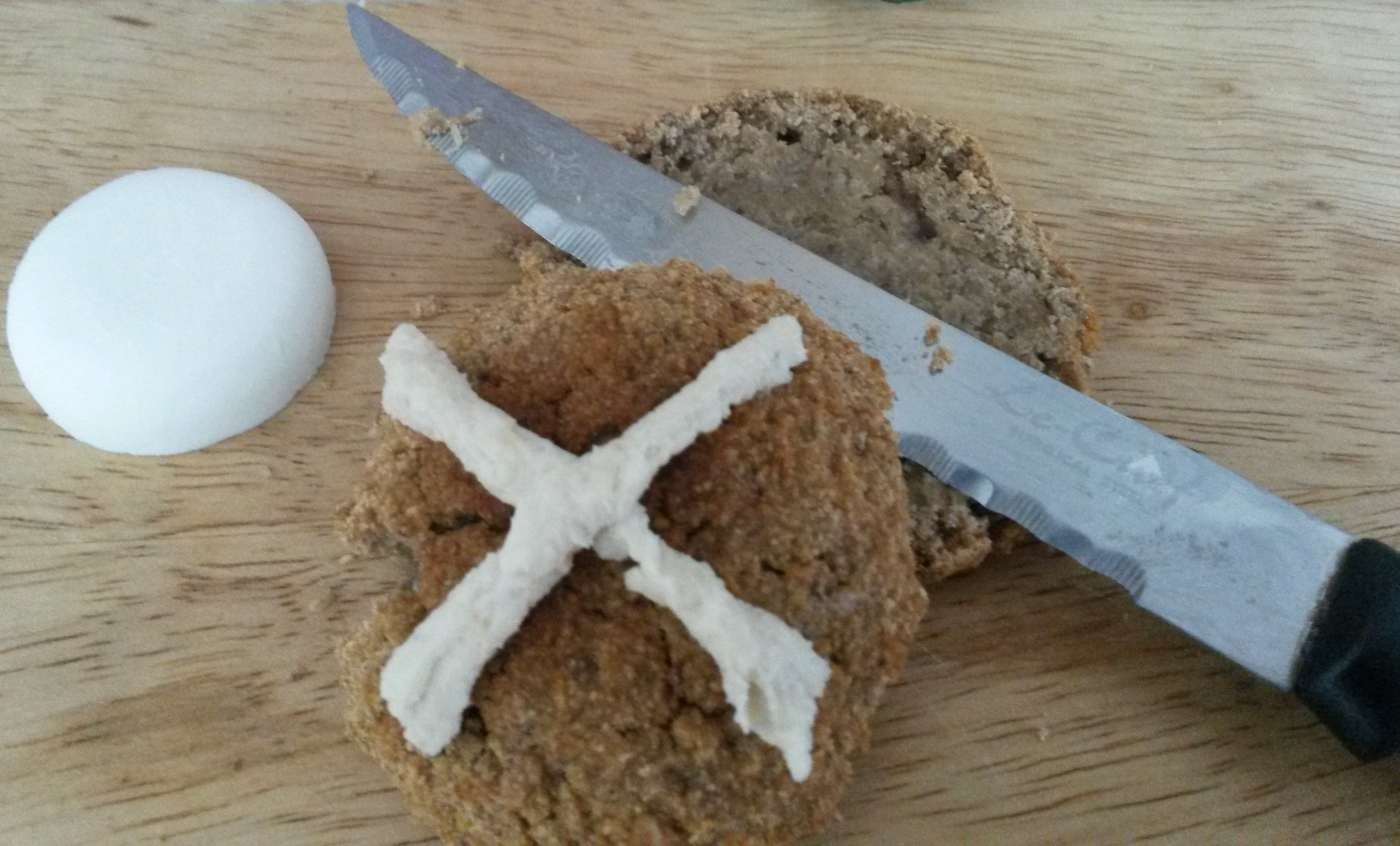 - Make the crosses out of anything you can find! It is traditional to use pastry so this would work (it needs cooking ten minutes before the buns are done), or if you eat icing you could try that. I first tried coconut flour with water