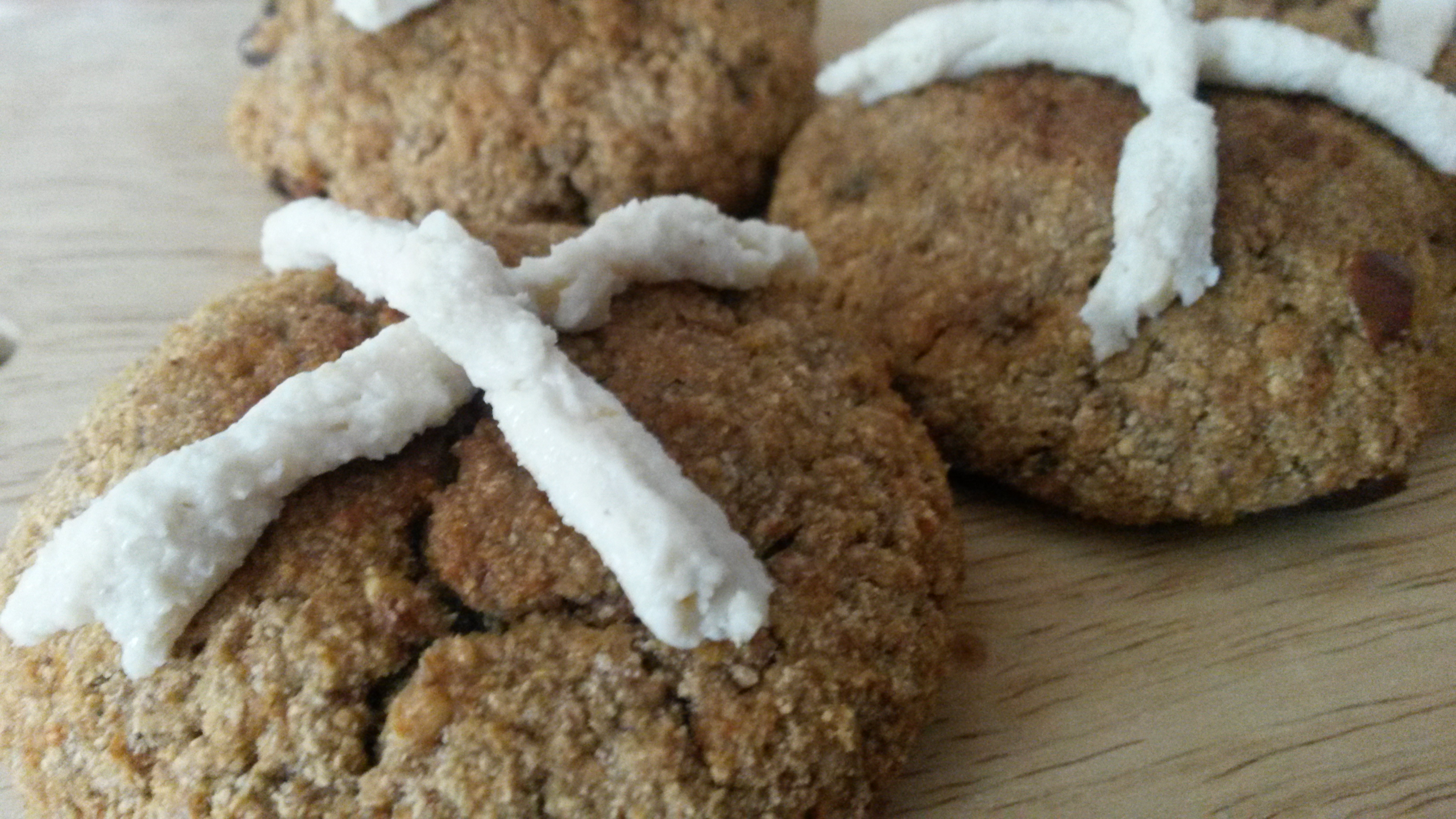 Tomorrow is Good Friday which is the traditional day for eating hot cross buns! … are you working or not working? Staying home? Last minute shopping? Baking? 🙂 or visiting family? 🙂 Whatever you’re up to, why not make these free from buns!? hot cross buns! These are DEGF (Dairy. Egg. Gluten. Free) as well as being yeast free and refined sugar free! Okay so before you get very excited, these are not your fluffy bread like buns, they are of course due to the free from nature of them denser and more doughy BUT the taste… oh yes! 🙂 The spicy fruity bun taste is there in all its deliciousness! These are easy to throw together despite the long list of ingredients and you can halve them and pop them in the toaster and spread with butter (I must post my vegan butter recipe)! Oh and of course being on Life Diet Health, these are little buns full of healthy goodness so you can eat them without pondering over the effects! 🙂