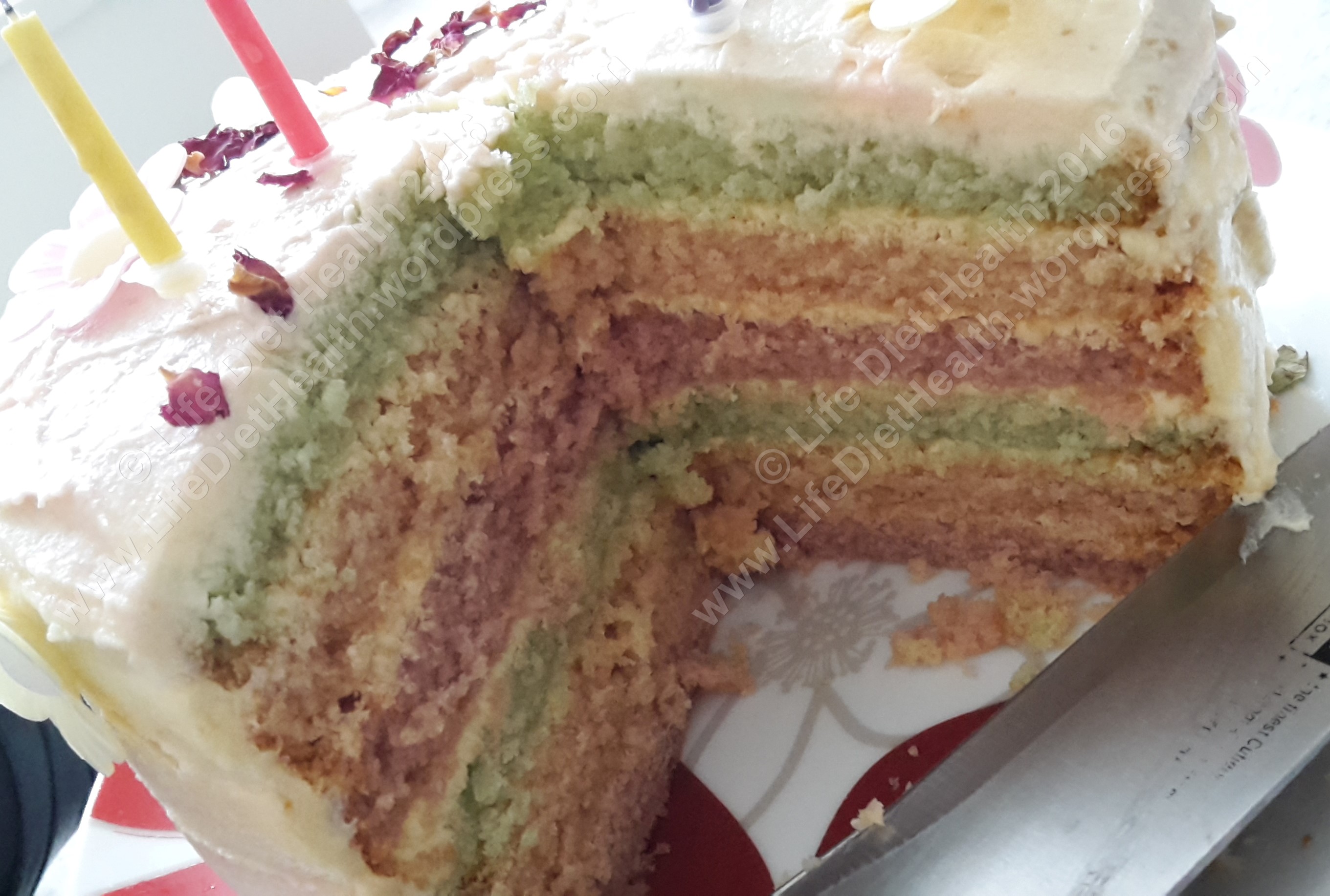 Well, happy non-birthday day to you! 🙂 That smoothie sounds and looks delicious, have to make it soon. And the cake looks super colorful! 🙂