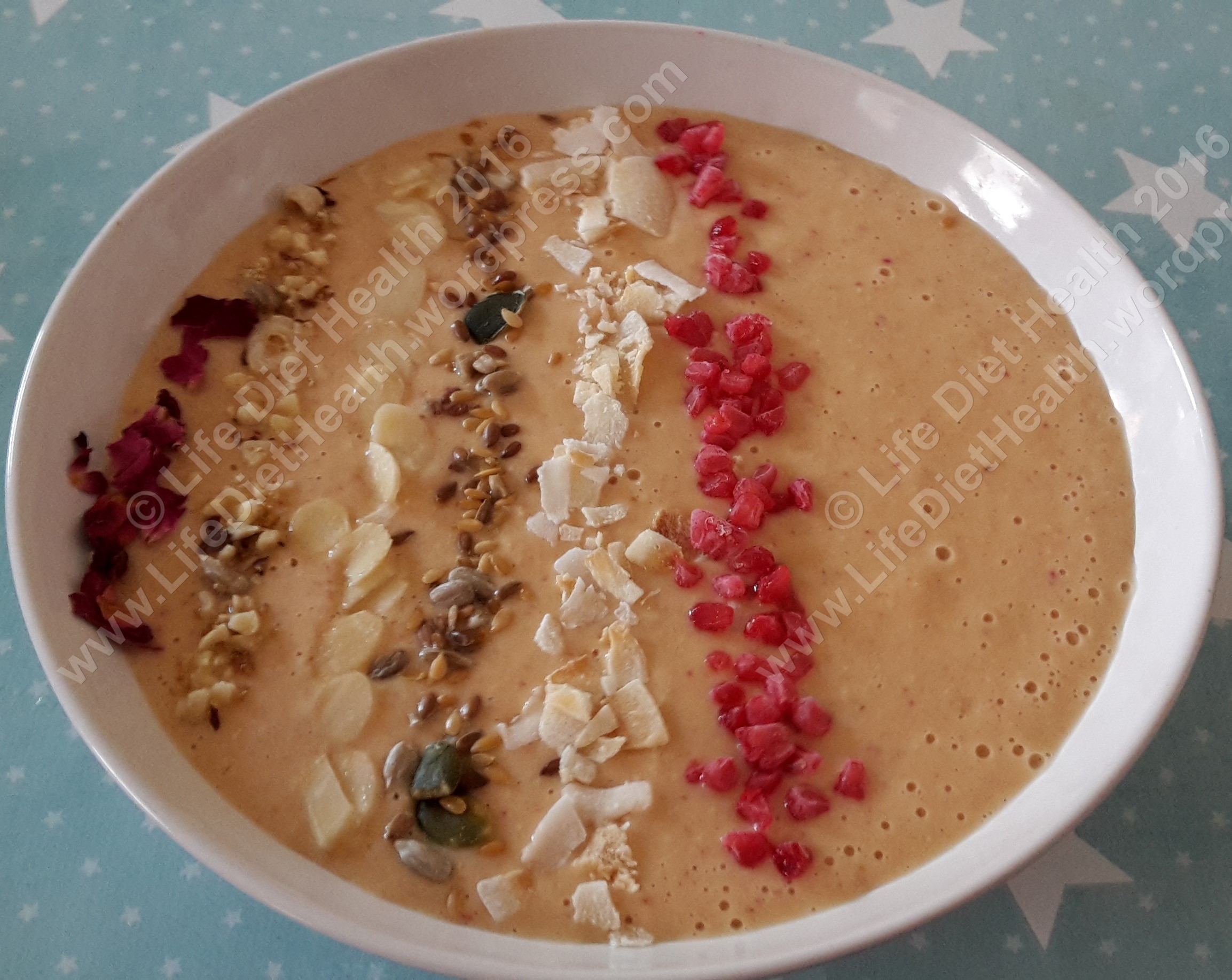 - Toppings: sliced fruit, seeds, nuts, coconut, petals etc.