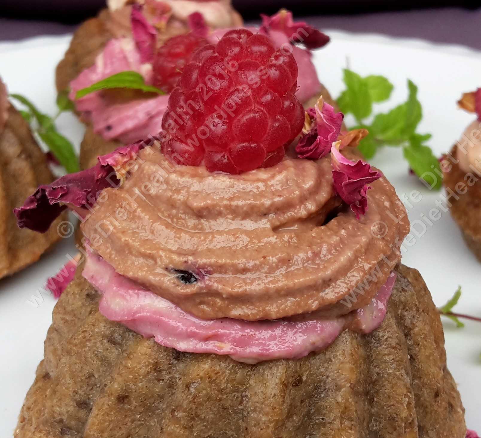 - To make the icing, blend the sunflower seeds with the coconut cream adding liquid as necessary. Add the maple syrup and blend again until creamy. Colour the icing as required then to make the icing stiffer add the powder half a teaspoon at a time until you reach the desired consistency. Pipe onto the cakes.