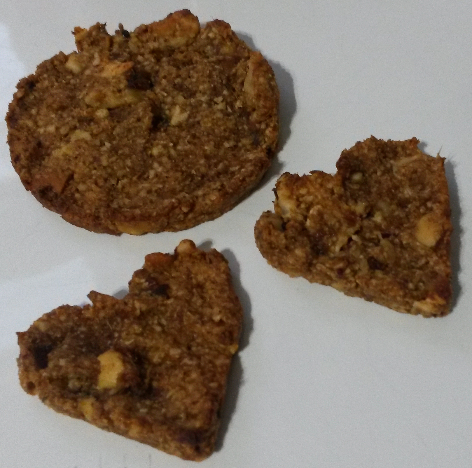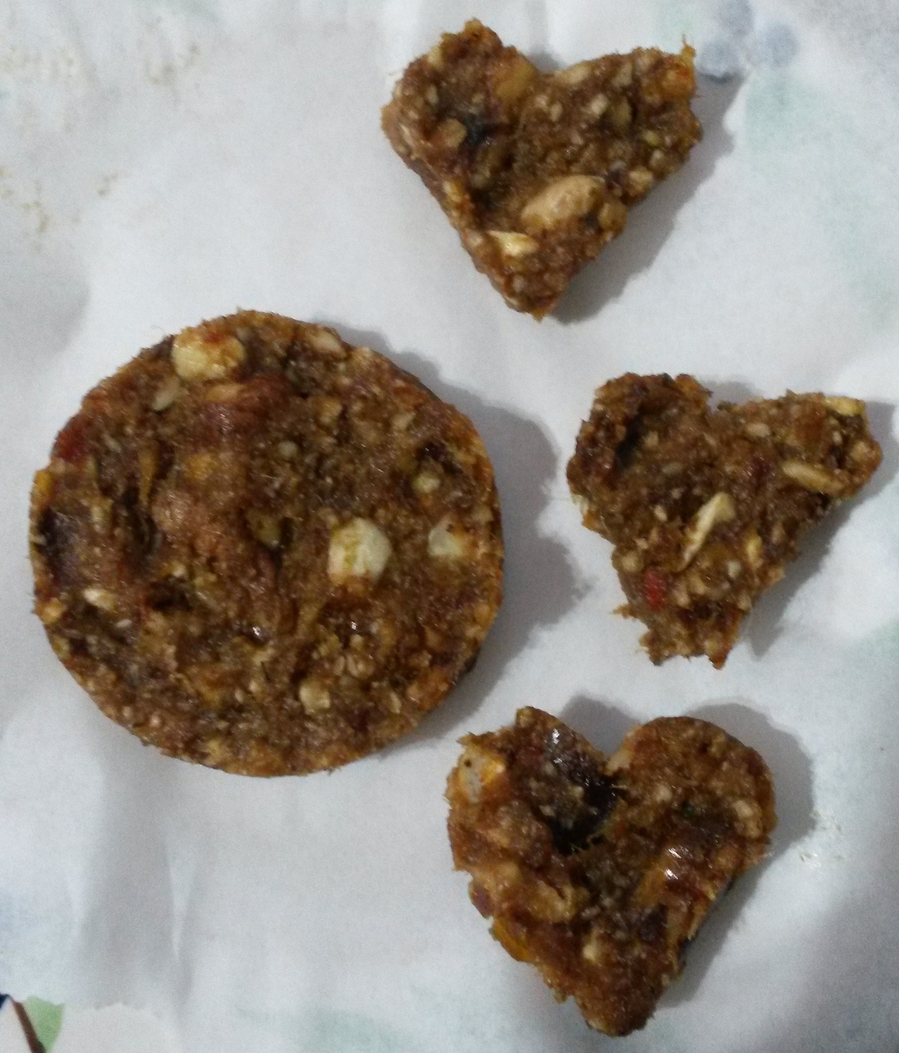 - Smush the dates with a fork until you have a smooth paste. Process about half of the mixed nuts to a powder and chop the other half roughly (or pulse on a low setting in the food processor) then stir all of the nuts into the dates. If you are following the raw recipe, this is now your base! Using pastry cutters, shape into rounds, hearts, stars or letters!