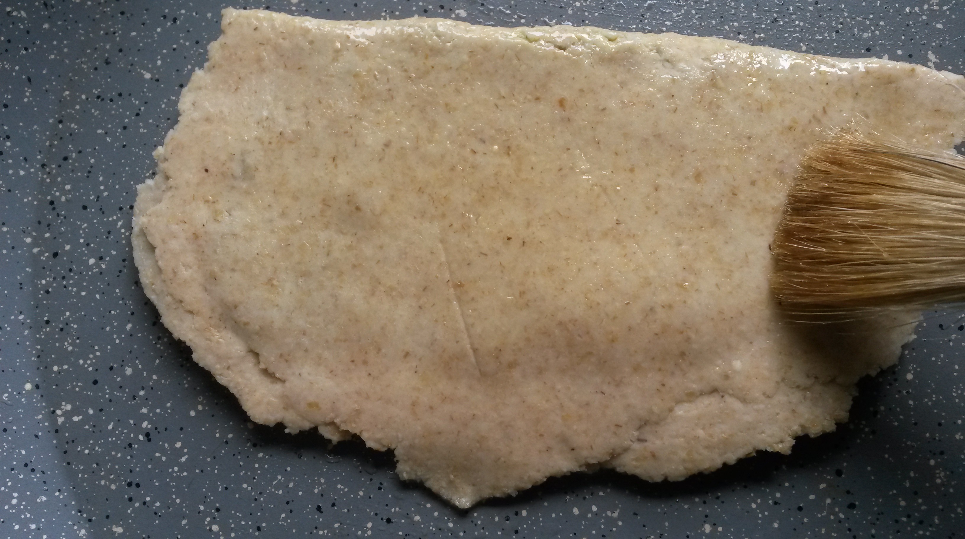 - Cook the gözleme in a hot pan brushing each side with melted coconut oil.
