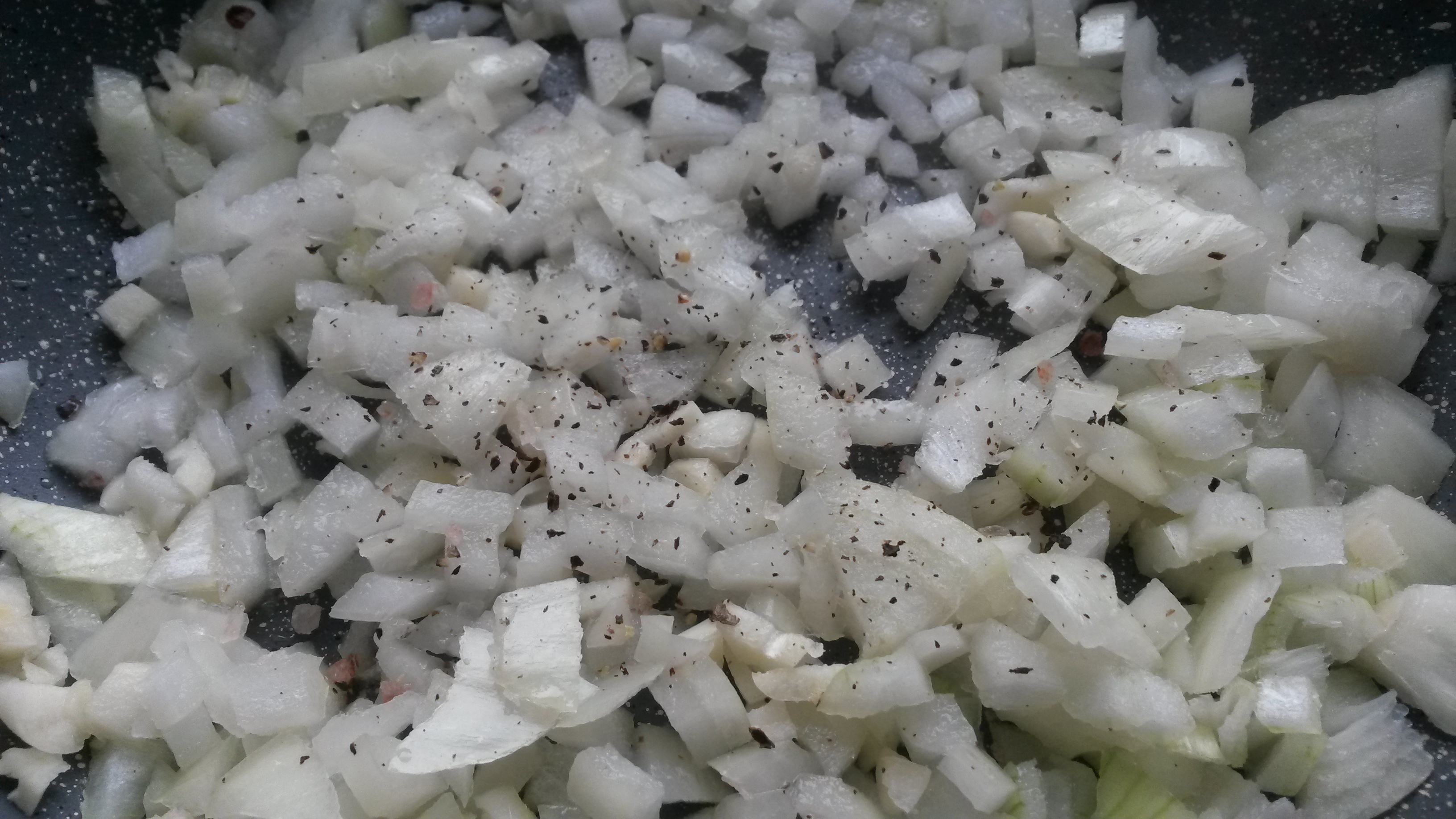 - Melt a sliver of coconut oil and add the diced onion and garlic. Cook until they are translucent (not browning)