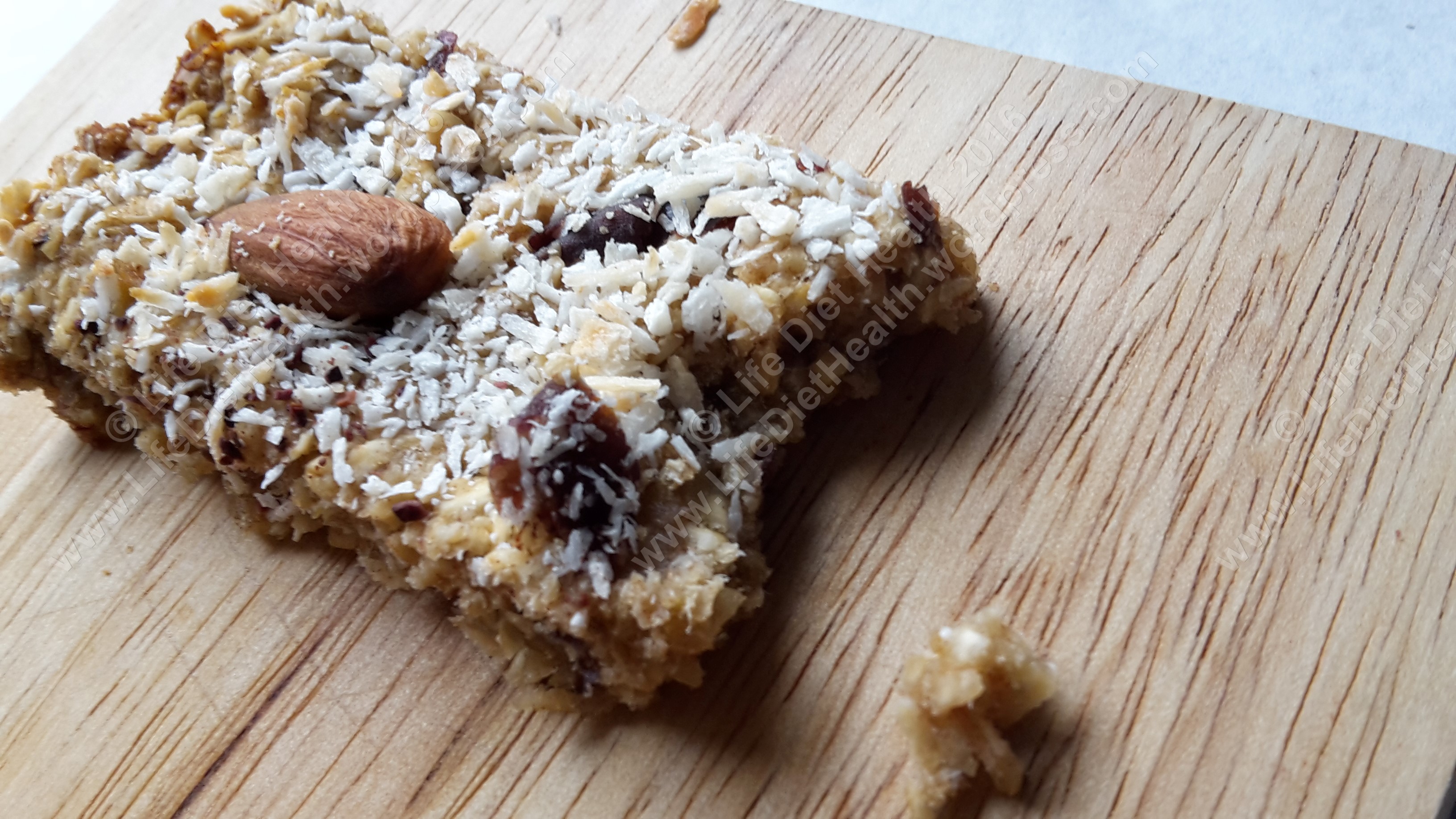 - Bake at Gas mark 5 (375f / 190c) for 10-15 minutes. Alternatively dehydrate at 40 degrees for 12 hours (makes a crunchier bar). Allow to cool slightly before cutting and removing from the pan.