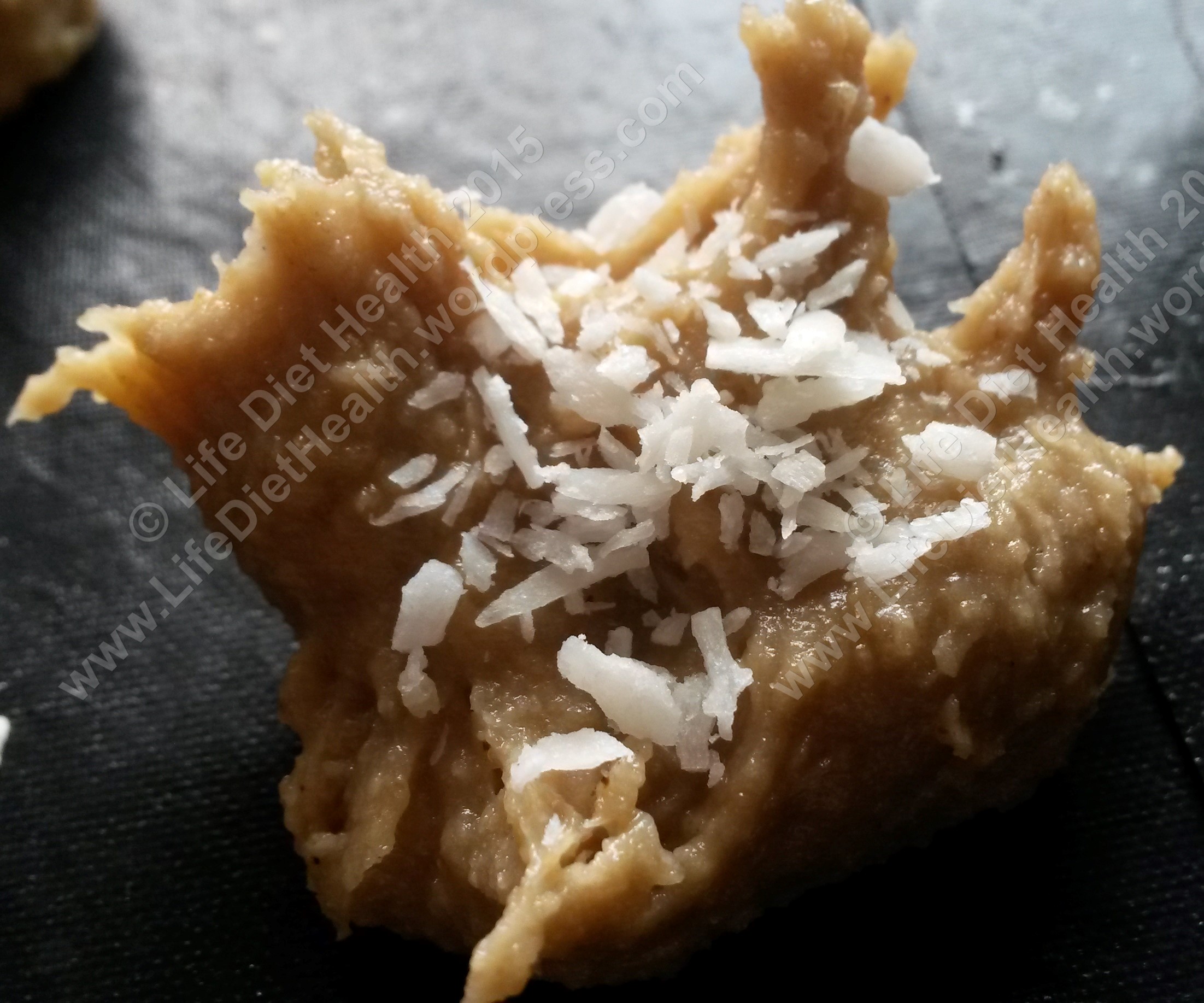 It’s me! 🙂 I’m here! 🙂 At last my incessant busy-ness is easing! 🙂 Finally I have ‘some’ time to myself! Well… for a few more days until the school holidays start that is! 😛 🙂 I know I’m posting on a Sunday AGAIN! After initially stating that Sunday would be the only day I didn’t post, but if I look back over the past month, then Sunday has been the only day which I have managed to post! 🙂 I’m very excited to be back in the kitchen! 😀 I can’t wait to be able to open the fridge to find dairy free feta, chocolate jam and berry spread! I’m excited to try out some new courgette recipes (we actually managed to grow some courgettes this year)! and use the fresh tomatoes from the garden too! 🙂 This is the first year our fruit trees have been established enough to grow anything and the plum and apple tree are looking decidedly delicious already with half sized fruits adorning their branches. I just hope I have enough time at home to put them to good use! 🙂 Anyway, back to todays recipe! In the throws of being very busy and NOT wanting to just grab some processed snack to keep me going AND having finished all of my organic 60% chocolate 🙁 I needed something very quick and easy which I could nibble munch on! So these little bites were born! 🙂 You can flatten them into cookies or leave them in mounds for a different texture. Both take the same amount of cooking and you can add toppings – or even add into the mix any extra ingredients which take your fancy! I even made these again this morning… just to double check the recipe was what I thought it was! 😛 (no… not because I wanted something yummy to eat!)