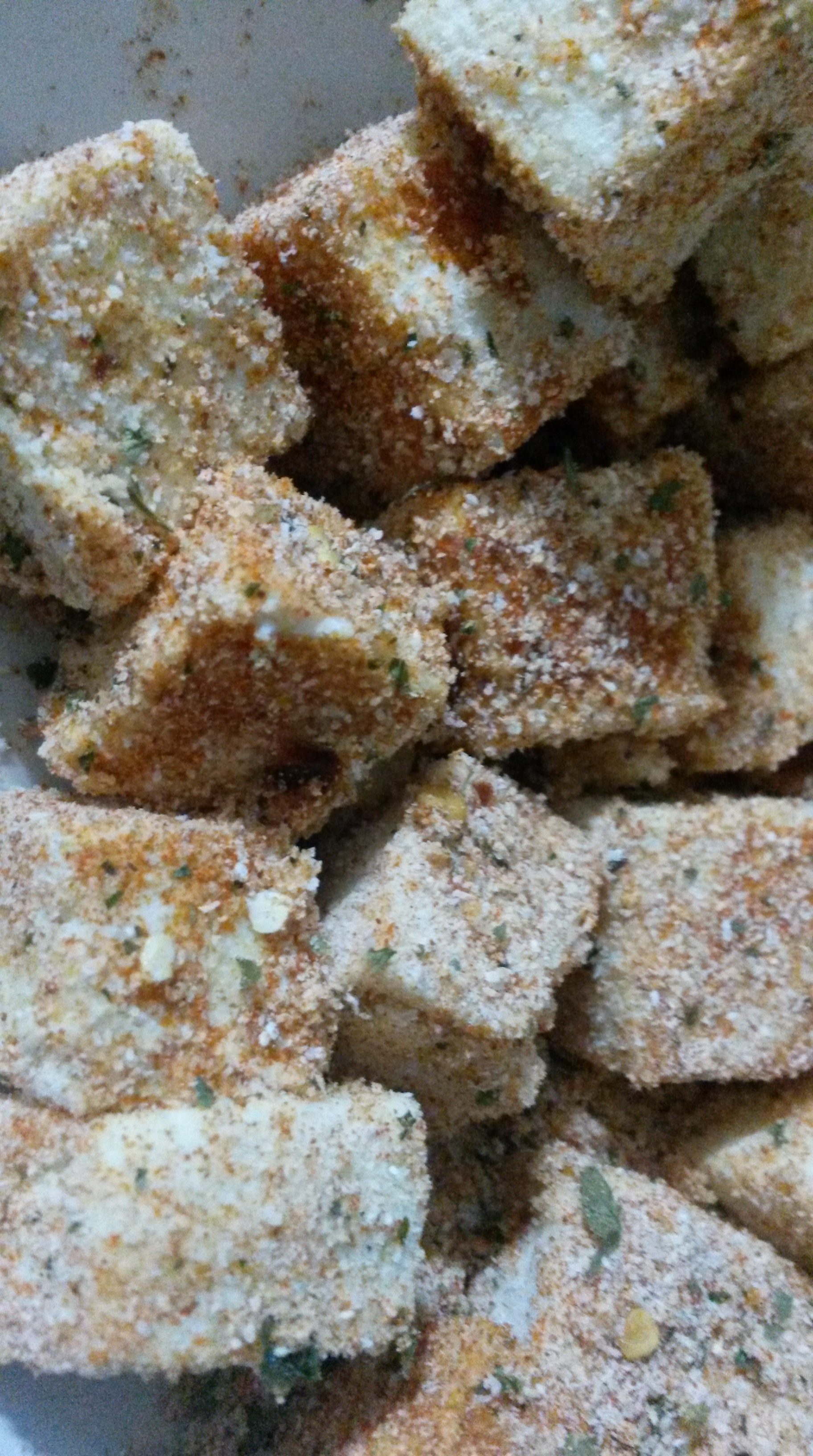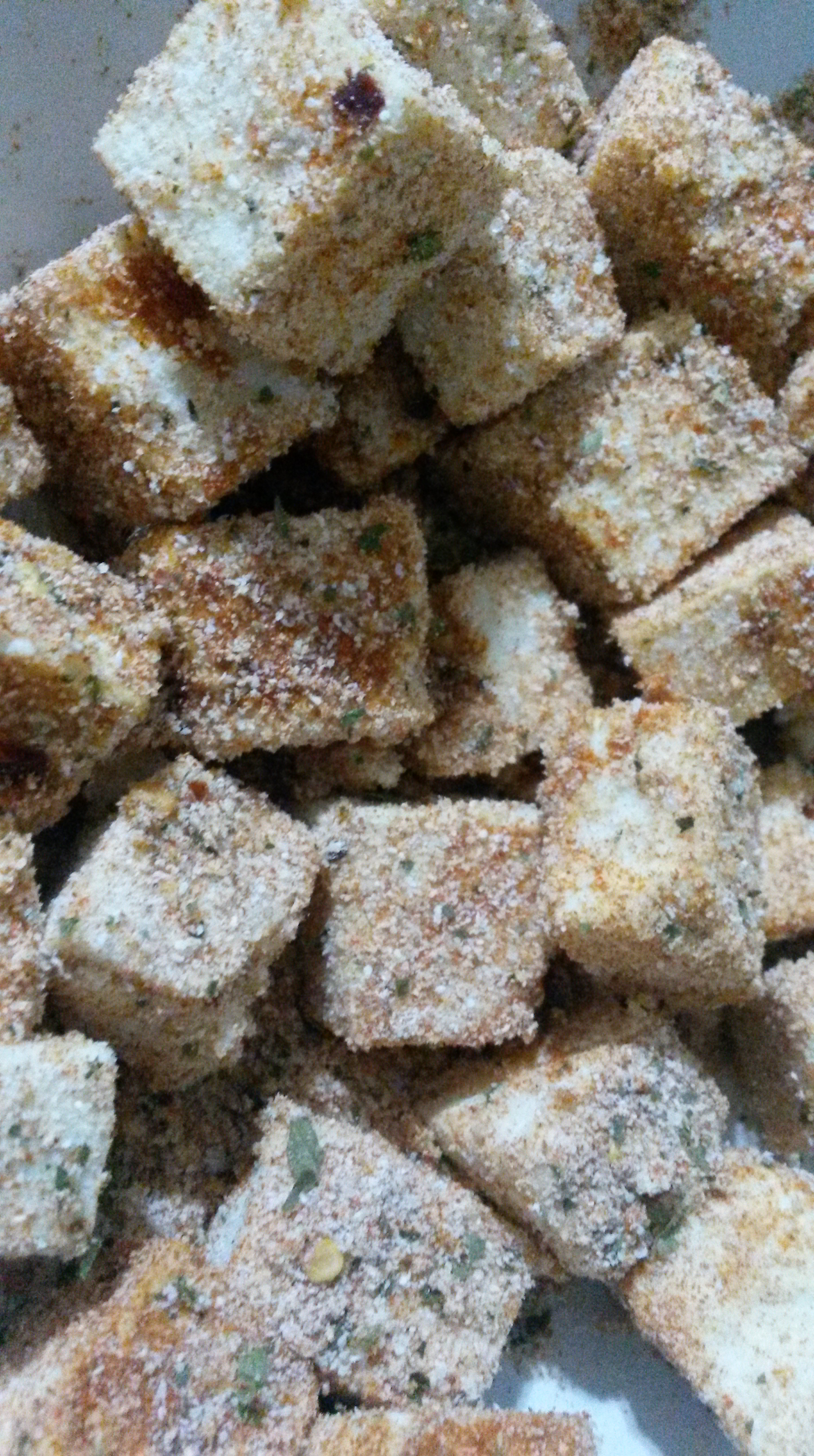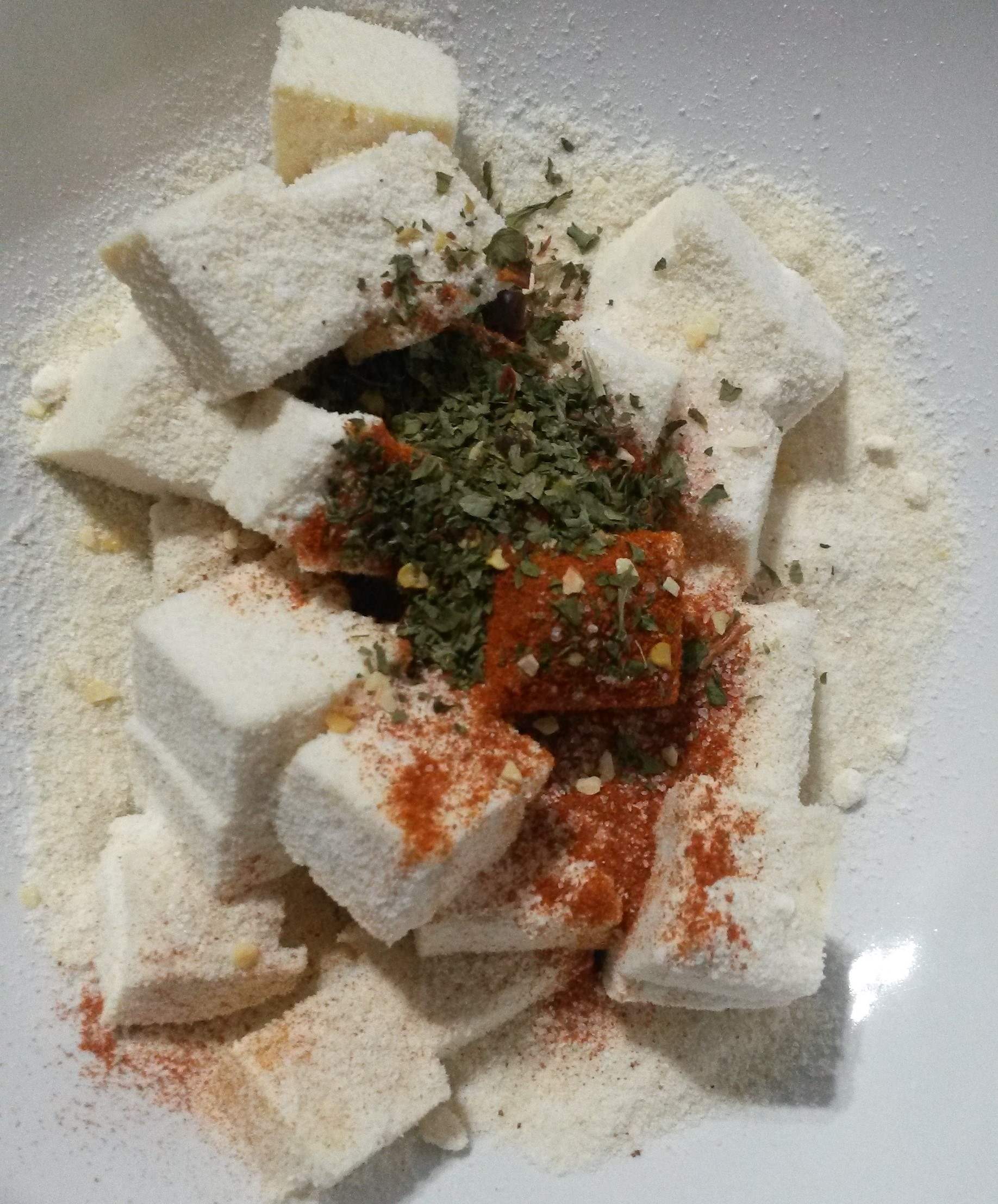 - Sprinkle the coconut flour all over the tofu.