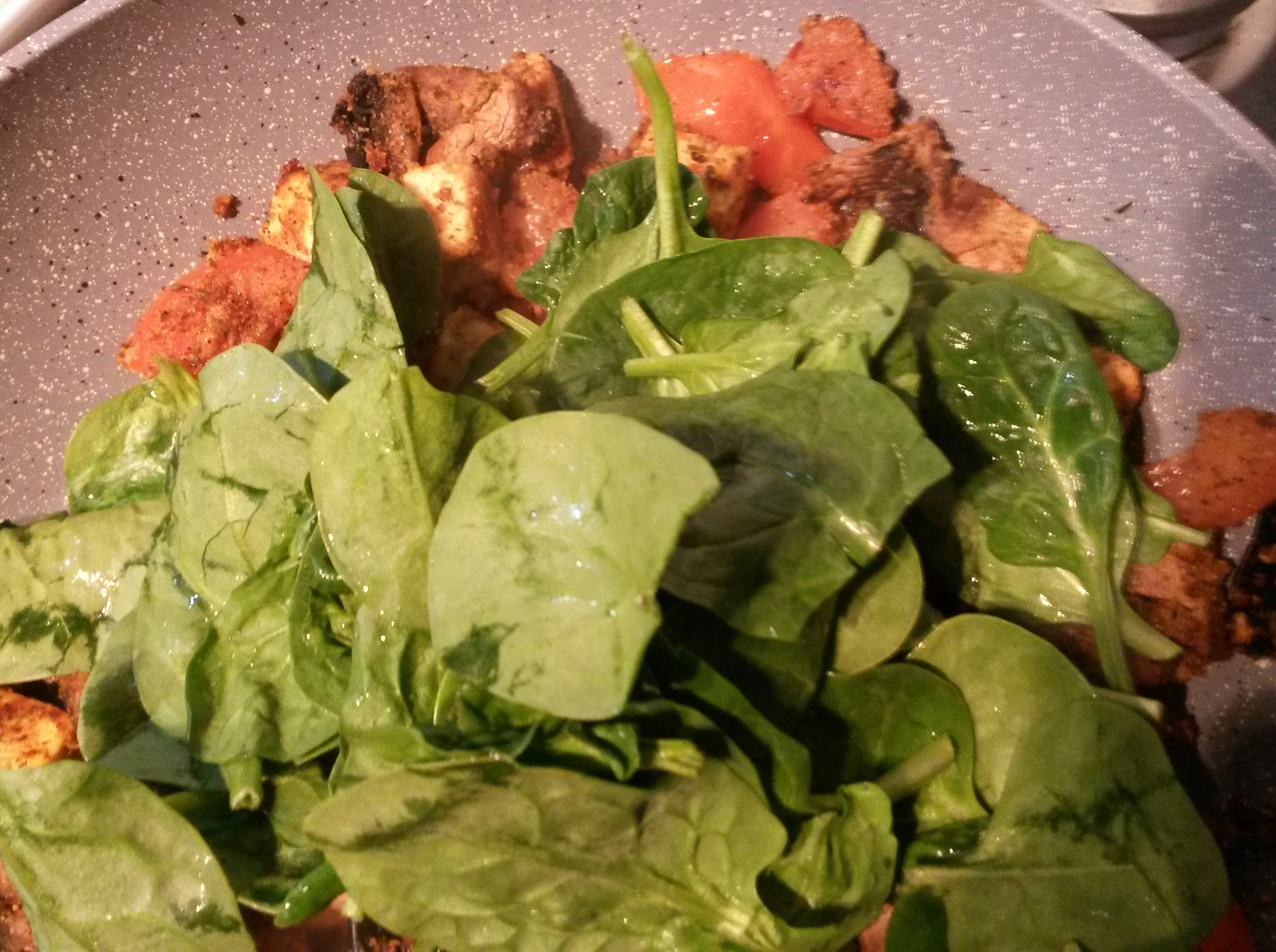 and gently mix everything together. When the spinach has wilted, remove from the heat and serve.