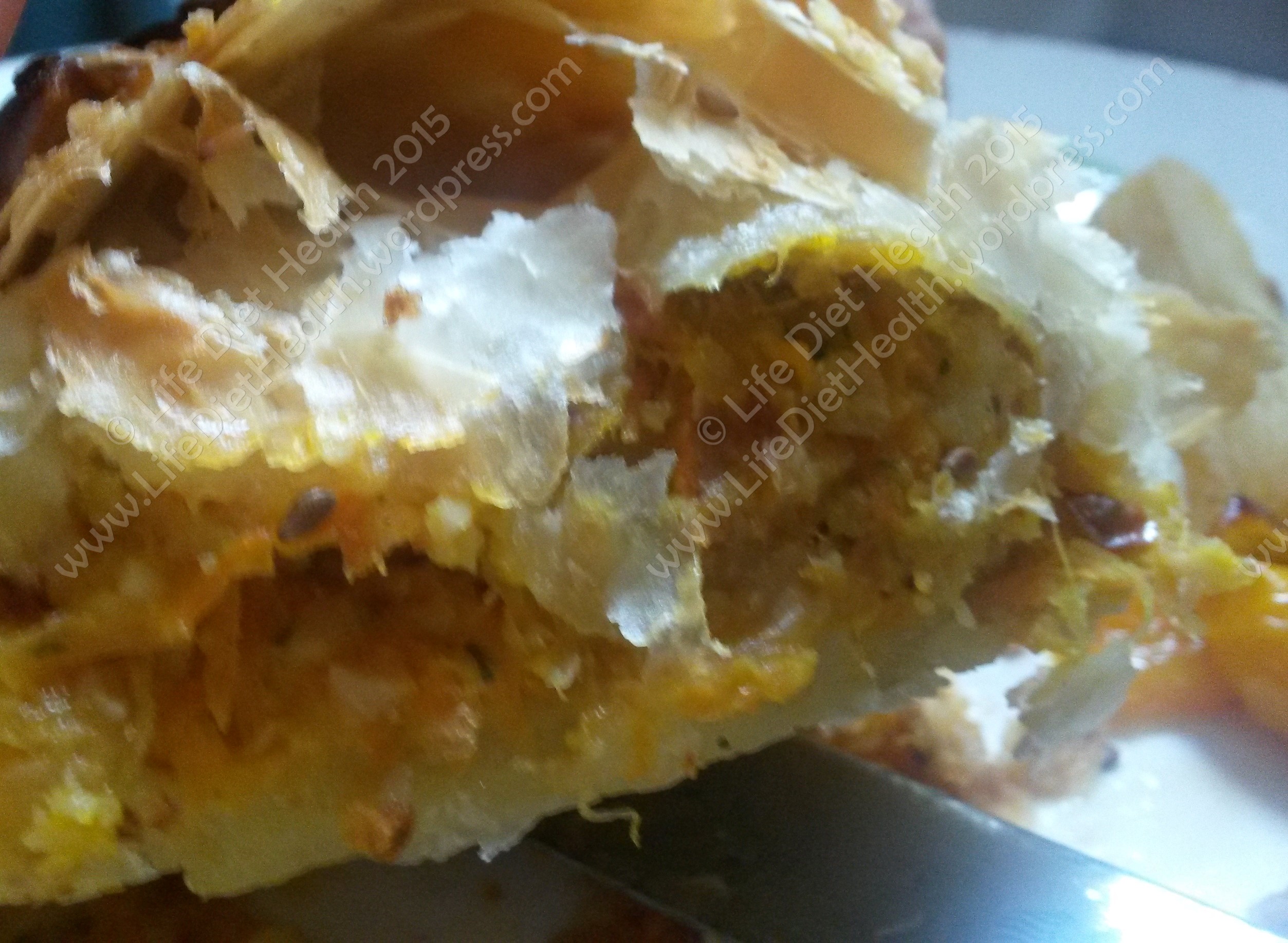 So, we’re now home from our travels and I was wondering if I should post a ‘what to eat when you’ve not been shopping’ meal 😛 or if I should post the chocolate dip which I concocted yesterday or as it’s Bonfire night whether a simple potato recipe would suffice! However, as I haven’t yet posted my pumpkin recipe, I decided that I should post that… it’s great for using up leftover pumpkin, or cooking some fresh so you have a tasty meal / snack / lunchbox filler all week! This great recipe can also be made into a wellington style dish – encased in a delicious pastry (with or without an addition of cheese) and served to guests (like my Mum!) 🙂