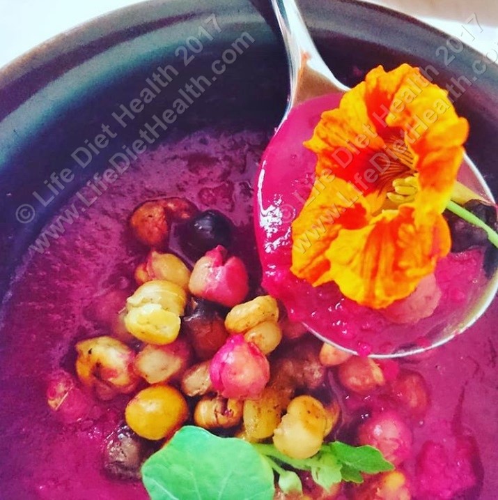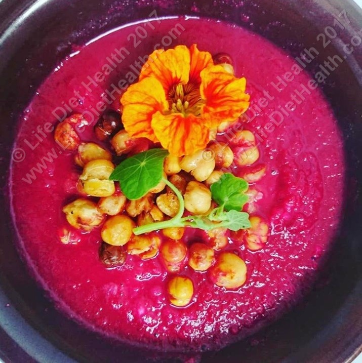 As I’m the only one who eats beetroot in our family (unless I hide it in cake), I decided to make a beetroot soup. I added in some nasturtium leaves and flowers as there are a LOT growing and it made the smoothest tastiest beetroot soup you could imagine… pretty too!