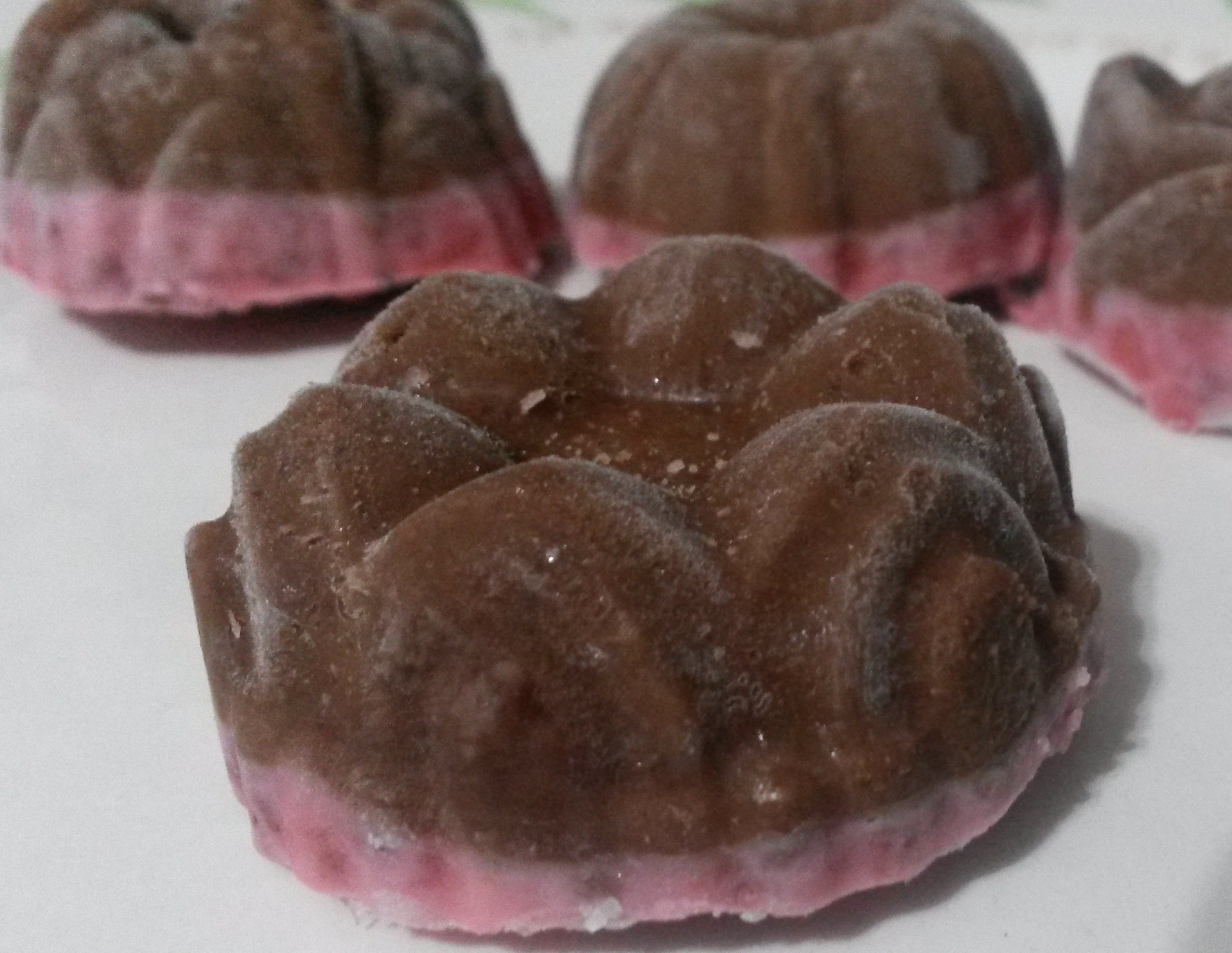 - Pour halfway up the sides of several (I used 14) small moulds. Put in the freezer.