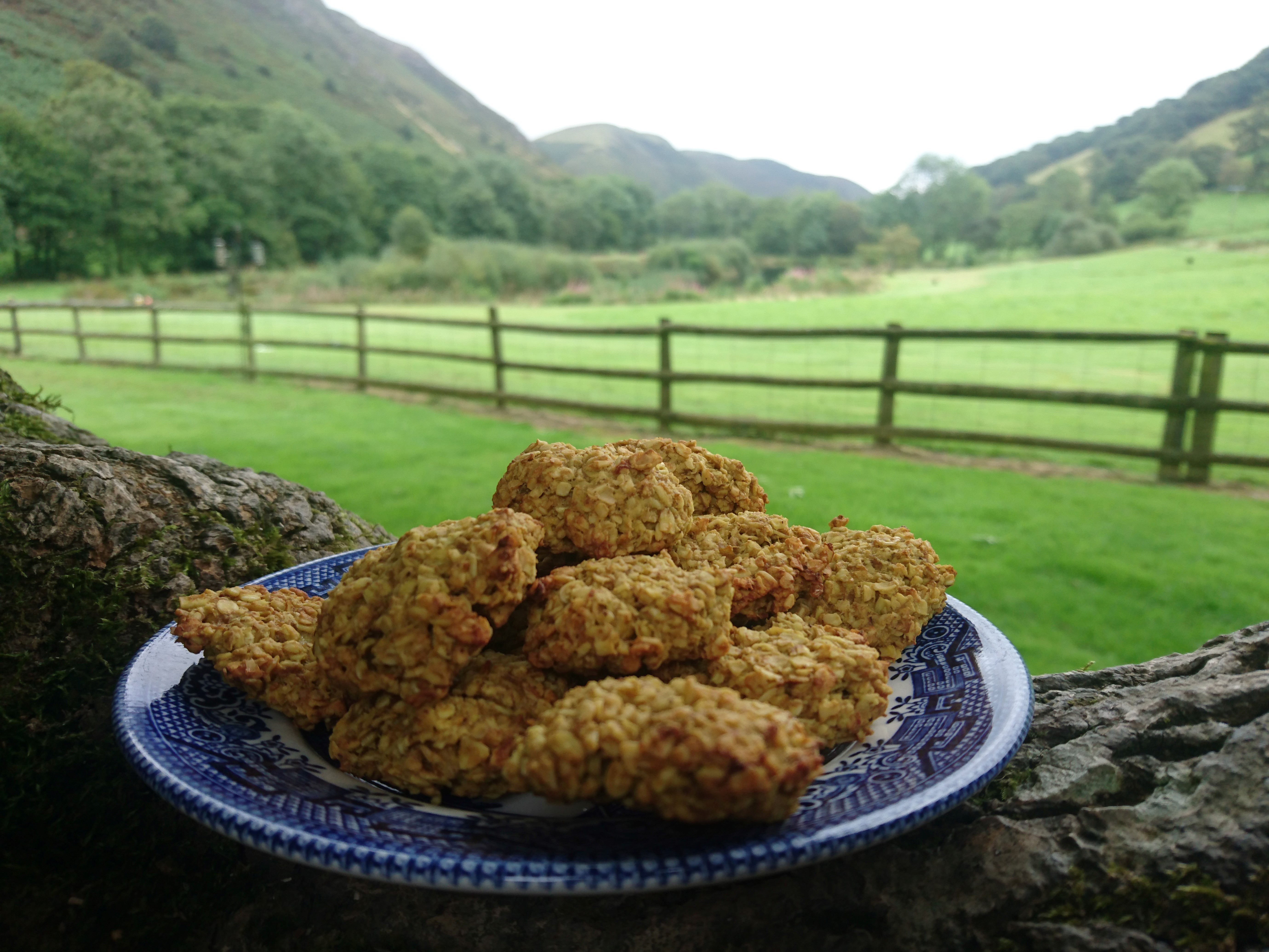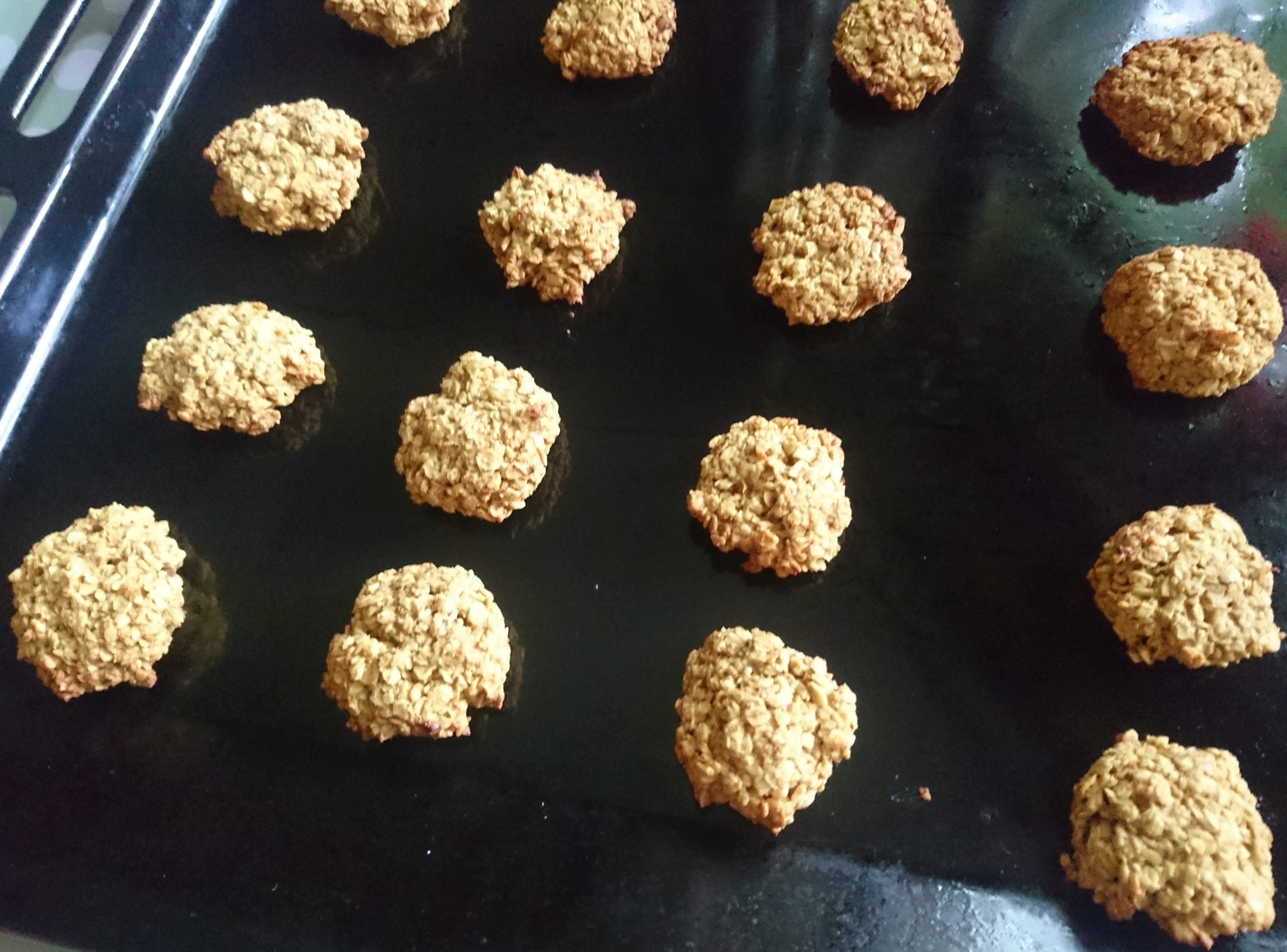 As I’m on holiday I’m not really in the kitchen (although it is one of my favourite places), but I did manage to whip up these delicious cookies to have on hand as an easy to carry energy boost! I didn’t have scales or proper measuring spoons so these are adjustable measurements. What I did have though were some lovely superfood powders (bought with a half price voucher) which are: ‘goldenberry, turmeric and coconut’ and ‘acai, sacha inchi and coconut’ and then a plain blueberry powder.