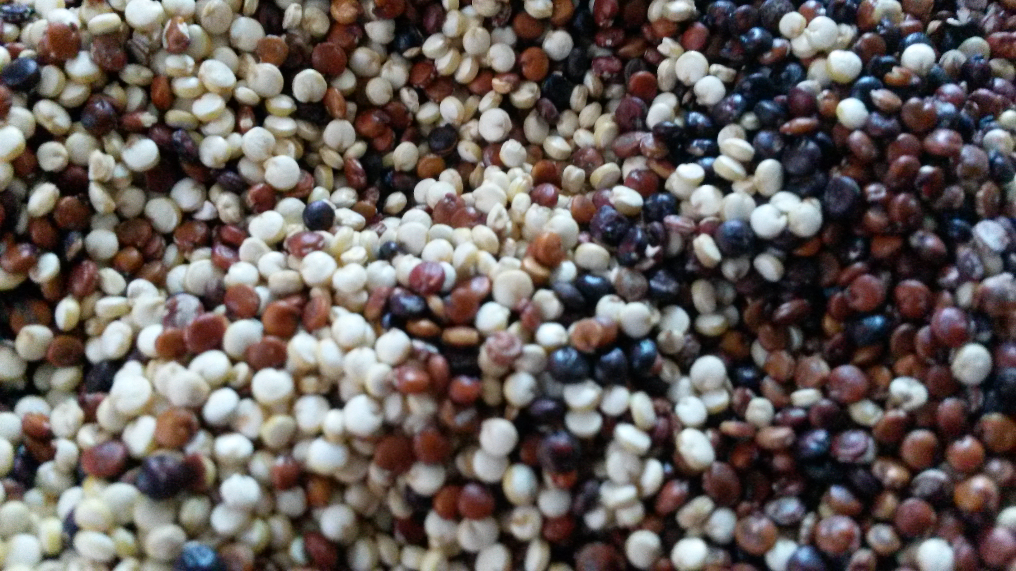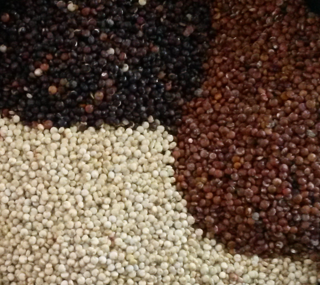 Quinoa! That grain (it is actually a seed!) that’s full of protein! 🙂 Standard quinoa (at least in the UK) is the white variety and more frequently available now from local sources. However, quinoa also comes in red and black varieties. I cooked some of the black as a side to my Spiral Salad and I couldn’t believe the difference in taste! I’m not really sure what I was expecting, but it was not a very dark nutty mouthful! Instantly I decided I didn’t like it and fed it to the boys instead who said it was nice! 🙂 Before trying the red quinoa on its own and the thought of being disappointed, I decided to mix all three together! 🙂