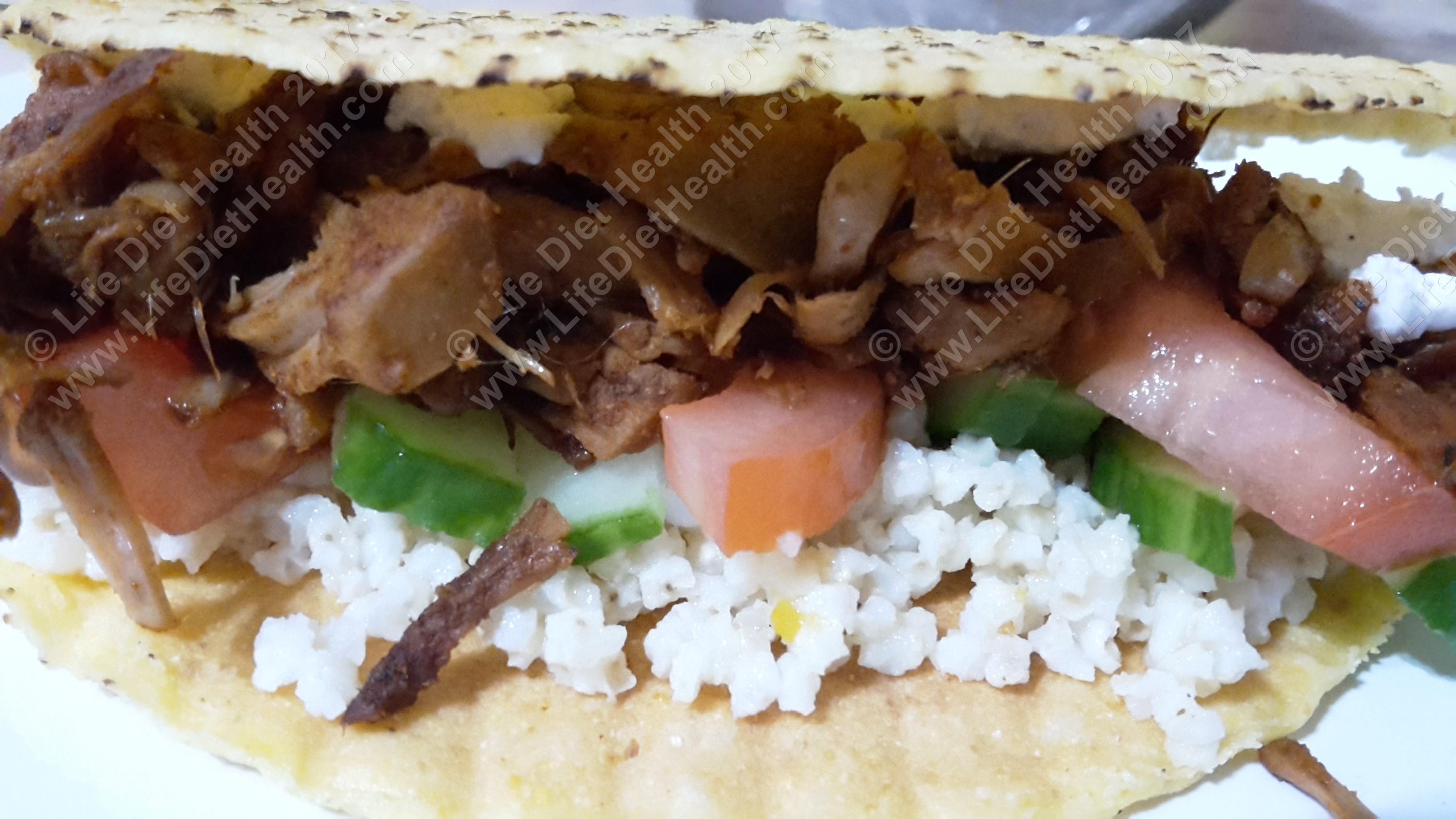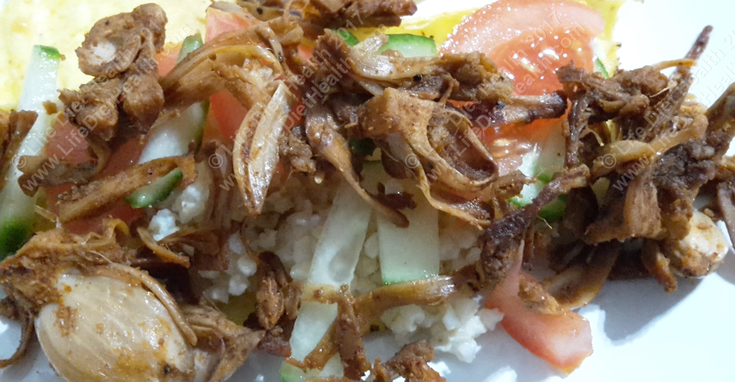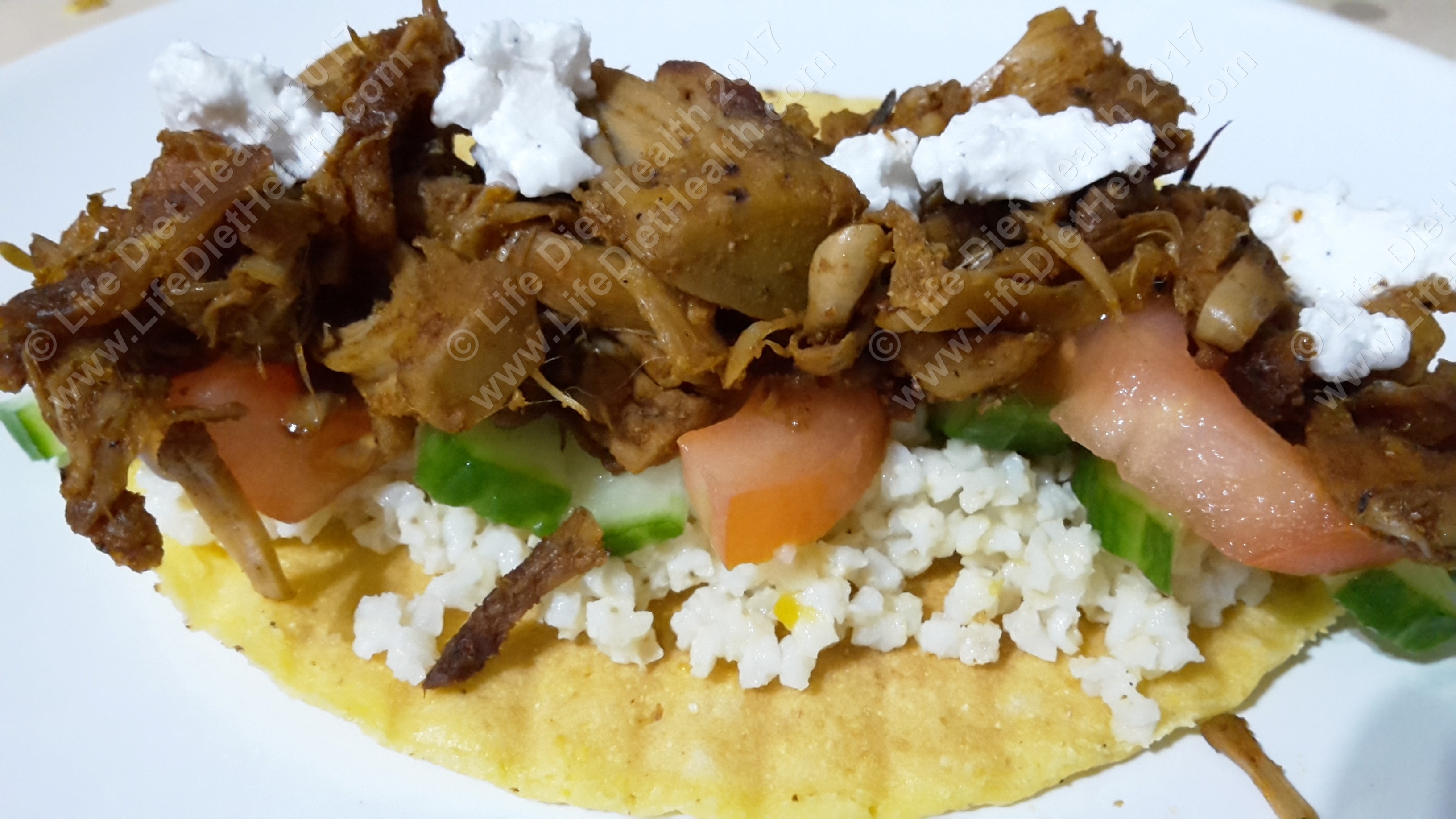 It was served over nachos and it was relatively nice – but a bit weird to be eating a fruit as a main meal! That said it intrigued me so I went hunting for it. My local Asian store sold them fresh for £25 (UK) each! WHAT!!! I could buy a whole weeks worth of vegetables for the whole family for that! Hmmm! Then a few months later I found it (much cheaper)in a tin, in water 😀 So I bought a tin and thought I’d try and make my own version of the dish I’d tried (with my own flavours 😛 ) And… a year and a bit later when there was nothing substantial to eat without effort and/or shopping, I discovered that same jackfruit tin at the back of the fridge! 😛 I MOST certainly won’t be leaving a tin untouched for that long again! Jackfruit is going to become a regular in the Life Diet Health kitchen 😀